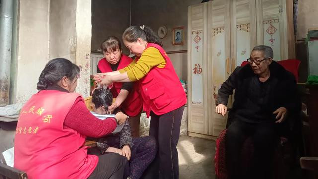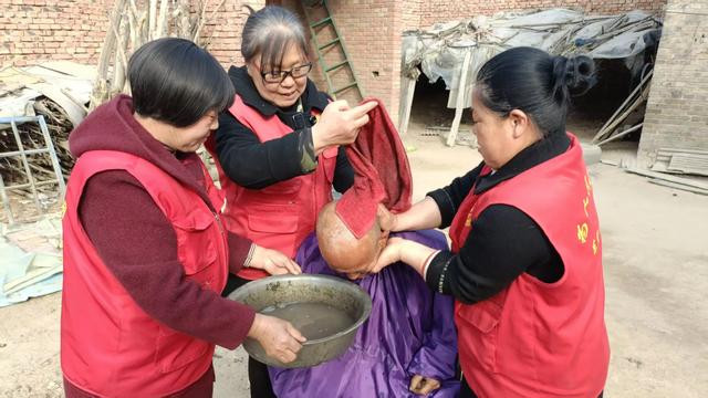 志愿者们兵分两路,一组前往76岁五保户艾清华家中。艾大叔年事已高,屋内杂乱。志愿者们迅速行动,清扫屋内屋外,规整物品,仔细擦拭满是油污的锅碗瓢盆。随后,志愿者又贴心地为艾大叔洗头、洗脚、理发,一番照料后,艾大叔容光焕发。