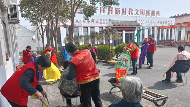 另一组志愿者则奔赴低保户邵来喜家打扫卫生,同样忙得热火朝天。结束后,他们马不停蹄返回实践站,为在这里等候的群众理发。志愿者一边施展娴熟技艺,一边和大家唠家常,现场氛围温馨融洽。